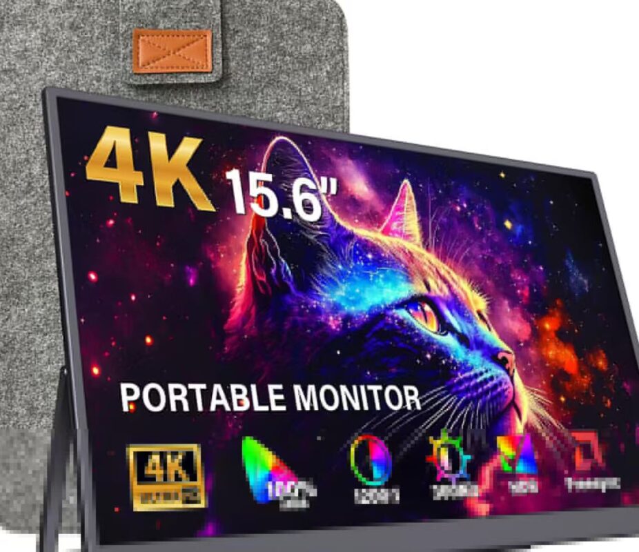 15.6″ Portable Monitor 60Hz 4K UHD 3840×2160 | 100% sRGB HDR | Travel Monitor with 2 USB-C & HDMI Ports | Second Screen for Laptop Mac PC Xbox PS5 Switch (Includes Adapter)